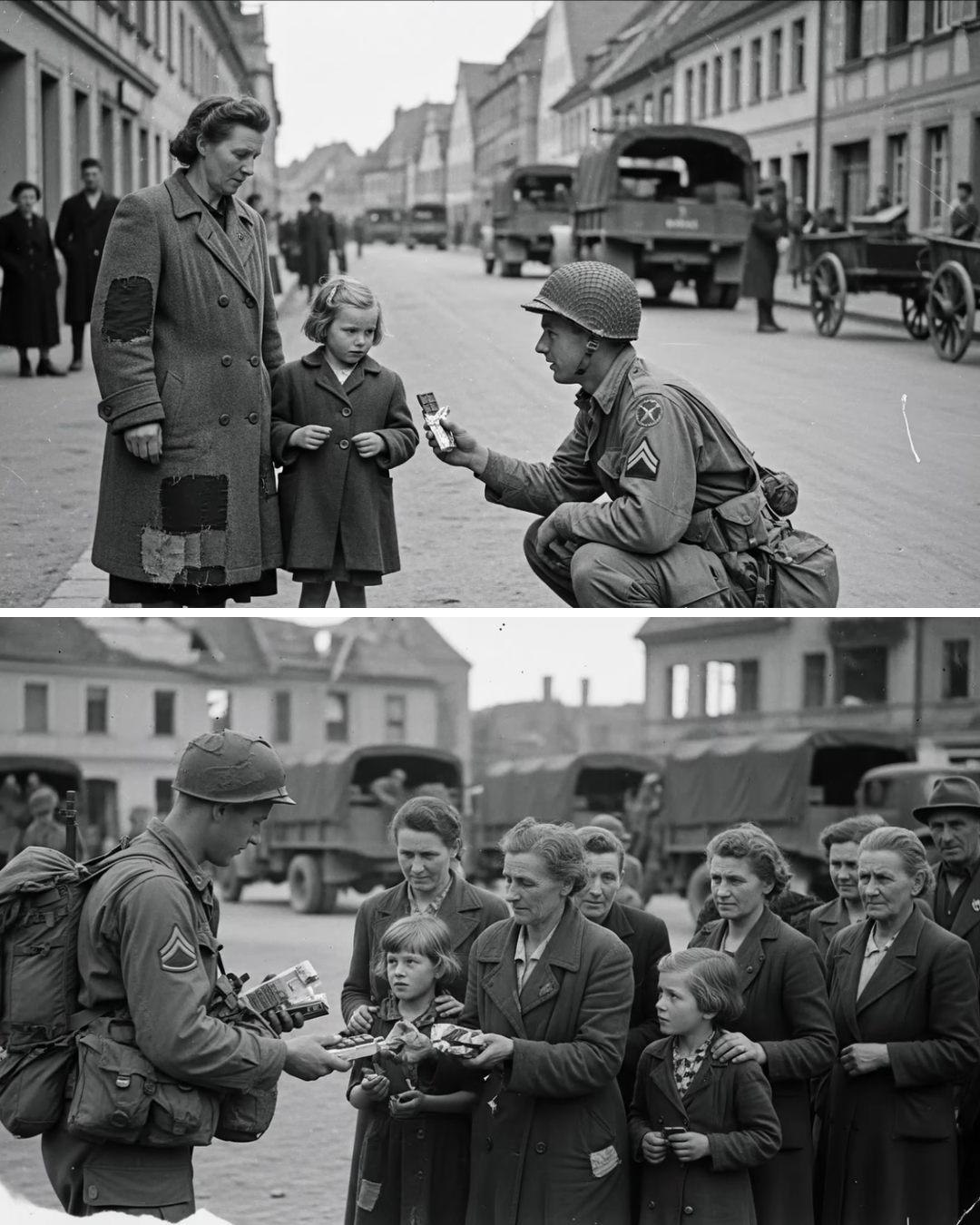 (1945) German Civilians Couldn’t Believe American Soldiers Shared Their Rations With Them. VD