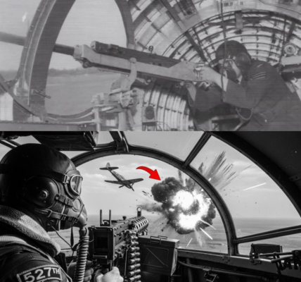 The interceptors struck at 09:45. German 20mm cannons, capable of tearing an aluminum wing off in a single burst, walked tracers across the sky. At 10:00, a Messerschmitt rolled inverted over Tondelayo and poured fire into the right wing. Engine Number Three erupted in flames. Fox feathered the prop and killed the fire, but the “widow-makers” weren’t done.