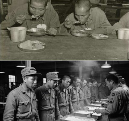 Minutes stretched into an eternity. Private Frank Miller—a twenty-year-old farmer’s son from Nebraska—returned. In his hands, he carried two steaming US mess kits and a half-loaf of coarse bread. As he approached, the savory, meaty aroma of beef stew drifted through the cool evening air.