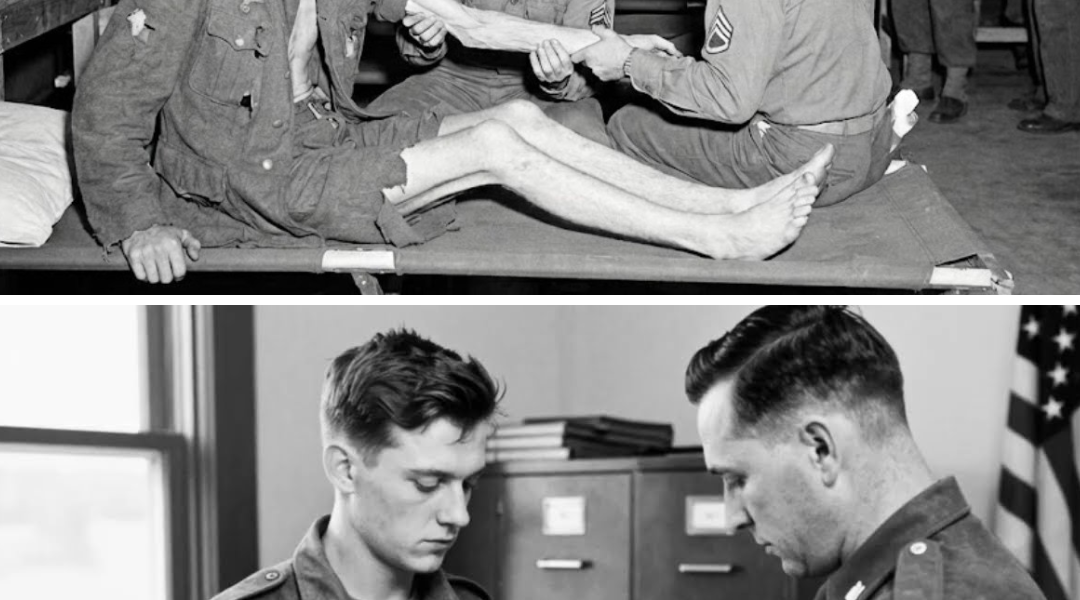 A young man stepped down, or rather, he lowered himself with a terrifying, brittle deliberation. Sergeant Miller, a medic who had seen everything from shrapnel-shredded limbs to the typhus-ridden camps of liberated Italy, stepped forward to assist. He caught the boy by the elbow and felt something that made his breath hitch. Under the rough wool of the German tunic, there was no muscle. There was no fat. There was only the hard, unyielding edge of a humerus bone, covered by skin that felt like cold, damp parchment.