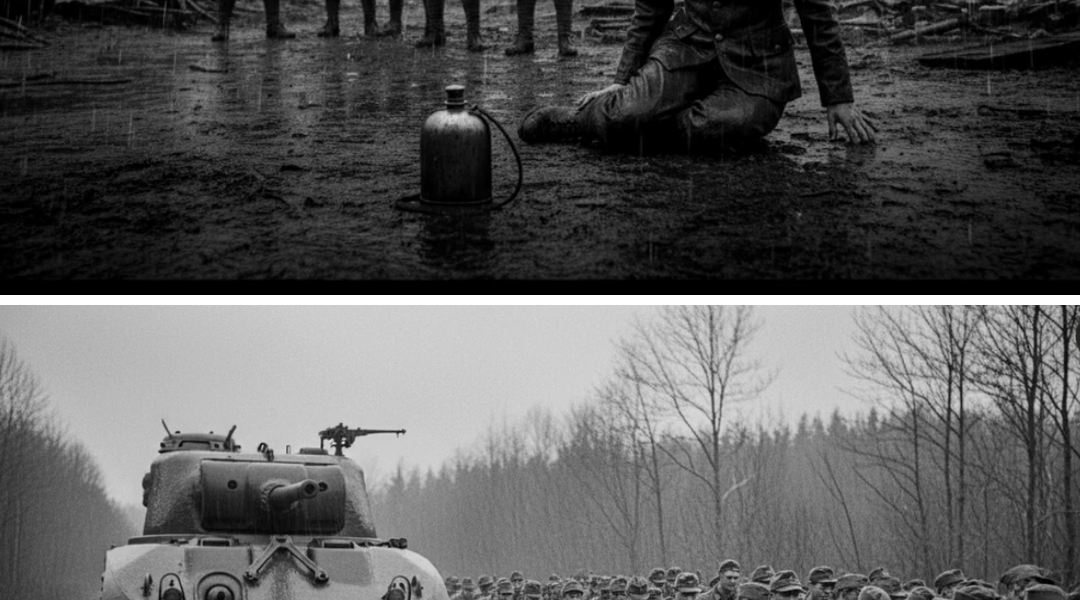 Żołnierze pilnujący kolumny napięli się, karabiny opuścili do pozycji gotowości. Dla nich to było nieznane zagrożenie – szalona kobieta, która może ukryć granat. Porucznik Parker, oficer o zaciętej twarzy, zrobił krok naprzód. „Co się, do cholery, dzieje, Evans?” „Nie wiem, proszę pana” – odparł Evans, wpatrując się w kobietę. „Upadła. Próbowałem pomóc, a ona pękła”. Parker warknął: „Na litość boską, postawcie ją na nogi. Nie będziemy tu nocować cały dzień”. Rozkaz był jasny: złapać ją, wciągnąć na górę, zmusić do posłuszeństwa. Ale Evans się zawahała. Przerażenie w jej oczach nie było buntem – to była dusza zmiażdżona bezpowrotnie. Zmuszanie jej do tego złamałoby ją całkowicie.
