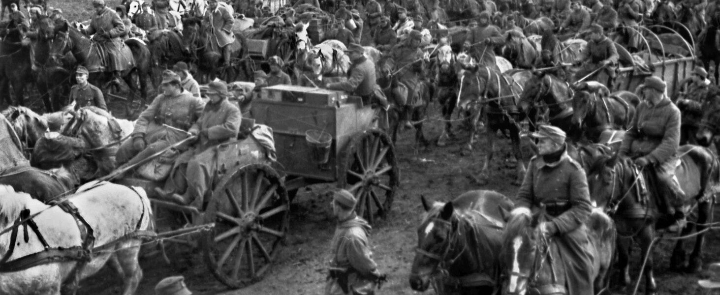 Die Pferde, einst Symbole der Stärke, sind abgemagert und zittern in der Kälte. Männer in zerrissenen Uniformen, mit hohlen Gesichtern und leerem Blick, halten die Zügel fest – viele von ihnen wissen, dass sie nie wieder nach Hause zurückkehren werden. Seit Monaten kämpfen sie ohne ausreichende Versorgung, ohne Hoffnung, und mit der ständigen Angst vor den sowjetischen Truppen, die ihnen dicht auf den Fersen sind.