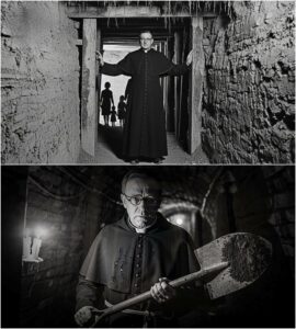 Miller wurde immer frustrierter. Er hatte erwartet, dass der Priester schnell einknicken, um Gnade flehen und Informationen gegen sein Leben eintauschen würde. Doch dieser Mann, dieser stille Lehrer mit dem blutüberströmten Gesicht, brach nicht zusammen. Nach zwei Stunden änderte Müller seine Taktik. Er befahl seinen Männern, die Schule zu verwüsten, Dielen herauszureißen und Wände einzubrechen. Wenn der Priester nicht redete, würden sie die Tunnel selbst finden. Innerhalb einer Stunde fanden sie den Eingang. Das Bücherregal war zu schwer, zu absichtlich dort platziert.