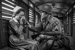 Man hatte ihr erzählt, die Amerikaner seien Bestien, die den Besiegten keine Gnade zeigten, dass Gefangene gefoltert, gedemütigt und in ihrem eigenen Dreck dem Tod überlassen würden. Doch als Sergeant James Miller an einem kalten Aprilmorgen 1945 vor München die Tür des Viehwaggons aufschob, sah er keinen Feind – er sah eine junge Frau, die an eine Metallstange gekettet war, ihre Krankenschwesteruniform zerrissen und befleckt, ihr Gesicht eingefallen vor Angst und Erschöpfung. Seine ersten Worte waren weder ein Befehl noch eine Beleidigung. Er fragte sie lediglich: „Wann haben Sie zuletzt gegessen?“ Drei Worte, eine Frage – und alles, was man ihr über den Feind erzählt hatte, zerbrach.