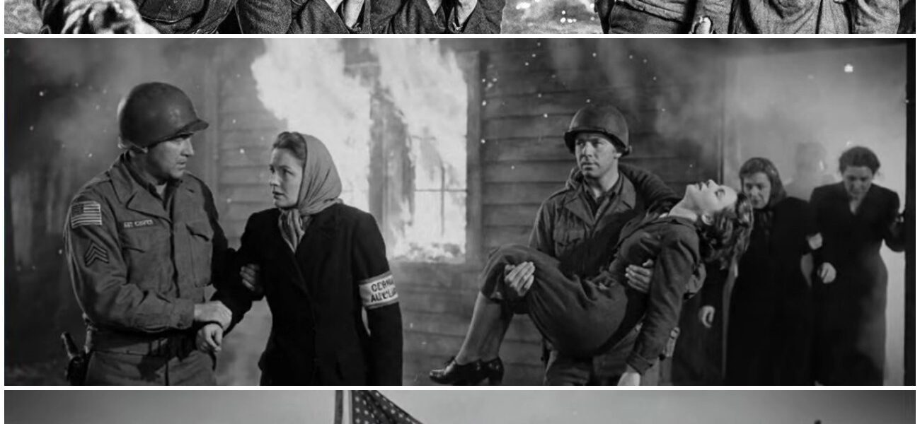 Not from Americans, but from fire. And then the door crashed open. Three figures burst through the smoke. They wore American helmets and carried rifles. Their faces were covered with wet cloth. For one frozen moment, everyone stopped. German women stared at American soldiers. American soldiers stared back.