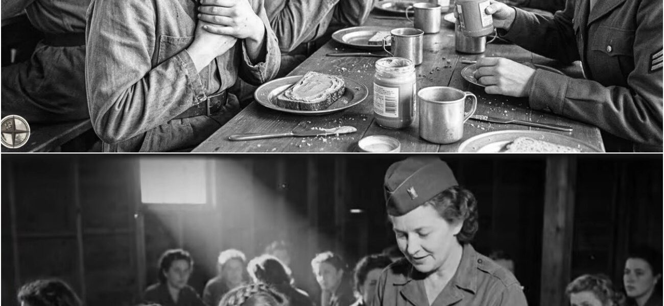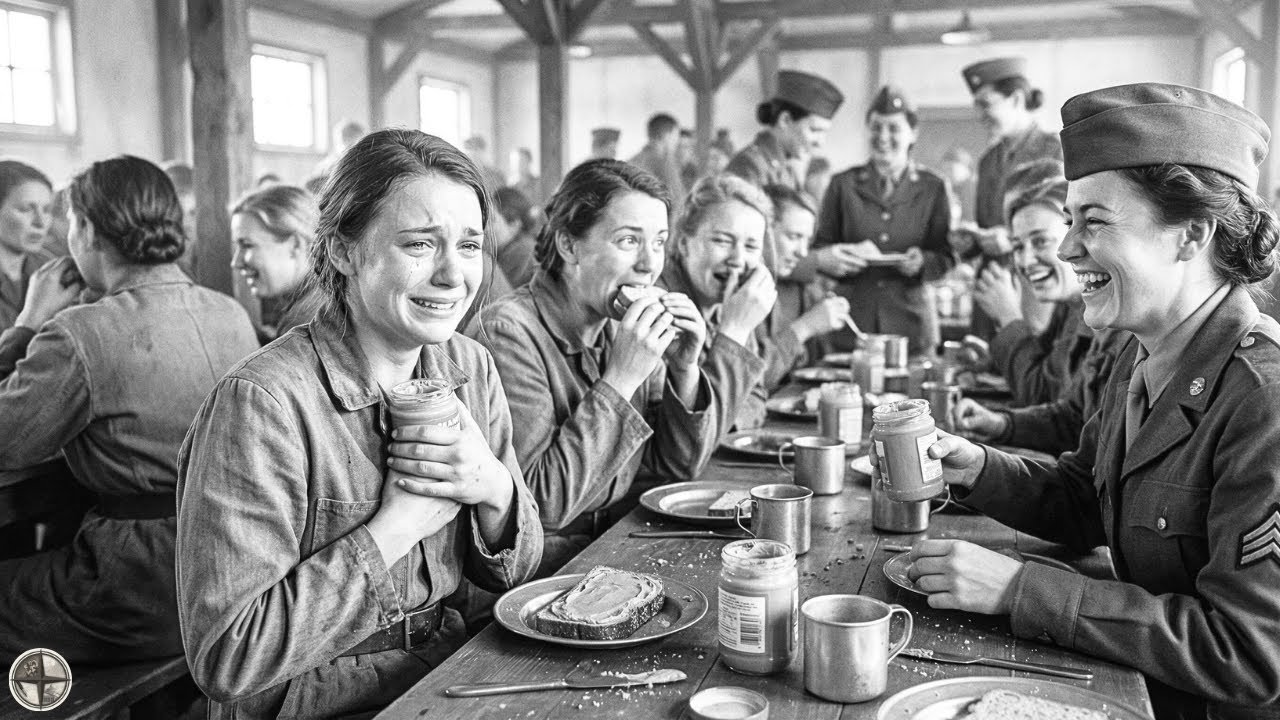 ” The German women received the news quietly. Some wept for defeated homeland. Others felt secret relief. The madness was finally finished. That evening, the messaul served a special dinner. Extra peanut butter for everyone, no rationing, jars on every table, open and overflowing. Guard Betty raised a jar in a strange toast.