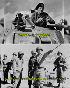 He cursed Montgomery privately, calling him jealous and slow. He joked bitterly that the British couldn’t keep up and resented being shown up by Americans.