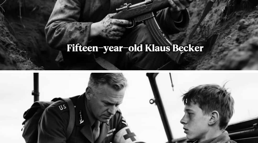 Germany, April 1945. The forest outside Aachen smelled of cordite and pine sap, morning mist threading through shattered trunks where bark had been torn by shrapnel. Fifteen-year-old Klaus Becker crouched in a foxhole with water up to his knees, hands shaking so hard he could barely hold the Mauser his thin arms had been taught to lift. American voices drifted through the fog—close enough to be words, not just sound. He’d been told they would torture prisoners, that no mercy waited for German defenders, that surrender was worse than a bullet.