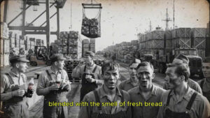 The military truck growled to life, shuddering like a waking beast, and rumbled away from the pier. Wilhelm pressed against the wooden bed, arms wrapped around his knees, breaths shallow as if loud breathing might invite a blow. But no one struck. Inside, the air was thick with clashing scents: hot iron from the truck, sea salt on their clothes, sour sweat from below decks—and then, slicing through it all, the smell of bacon and warm bread. The American soldiers ate breakfast casually, tearing into sandwiches wrapped in wax paper. The aroma of cold cuts, butter, and fresh bread flooded the cramped space, tightening Wilhelm’s stomach like a vice.