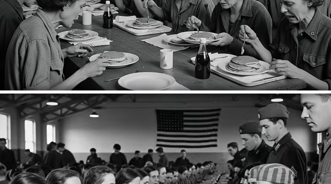 She was no longer a young girl, fresh from the war-torn streets of Munich. At 26, Helga had been through enough to desensitize her to the horrors of conflict. But this… this was different. This was something she had been taught to fear and despise for years: the American enemy, the so-called “barbarians” that Nazi propaganda had endlessly condemned. Yet here she was, standing in a strange land, a prisoner of war, staring at stacks of golden pancakes—food she hadn’t seen since before the war, something that seemed to belong to a life she had almost forgotten.
