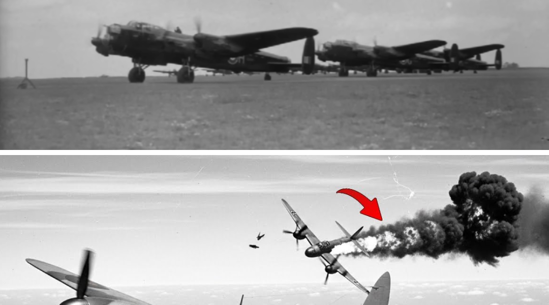 Behind them, four German night fighters burned on their own soil—four crews that would never reach the bomber stream, never fire upward into the belly of a Lancaster, never send another crew to their deaths in silence.