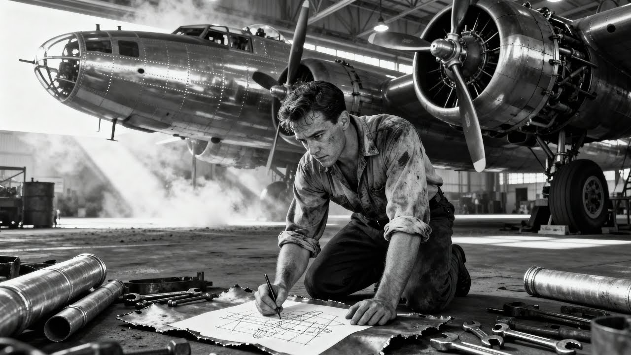 It won’t come from Boeing’s design department. It won’t even come from the National Advisory Committee for Aeronautics, where the nation’s top aeronautical experts are desperately trying to solve the problem. The solution will come from a 38-year-old aircraft mechanic with a seventh grade education who spent 15 years before the war installing residential plumbing in Cleveland, Ohio. His name is Tony Validor and his ridiculous idea about pipes is about to save the entire B29 program. The clock is ticking.