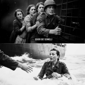 The lifeboat rocked as a wave rolled under it. Oars fought. Hands reached out, pulling survivors aboard—Americans hauling Germans, Germans hauling Americans, everyone reduced to shivering bodies with the same terrified eyes.