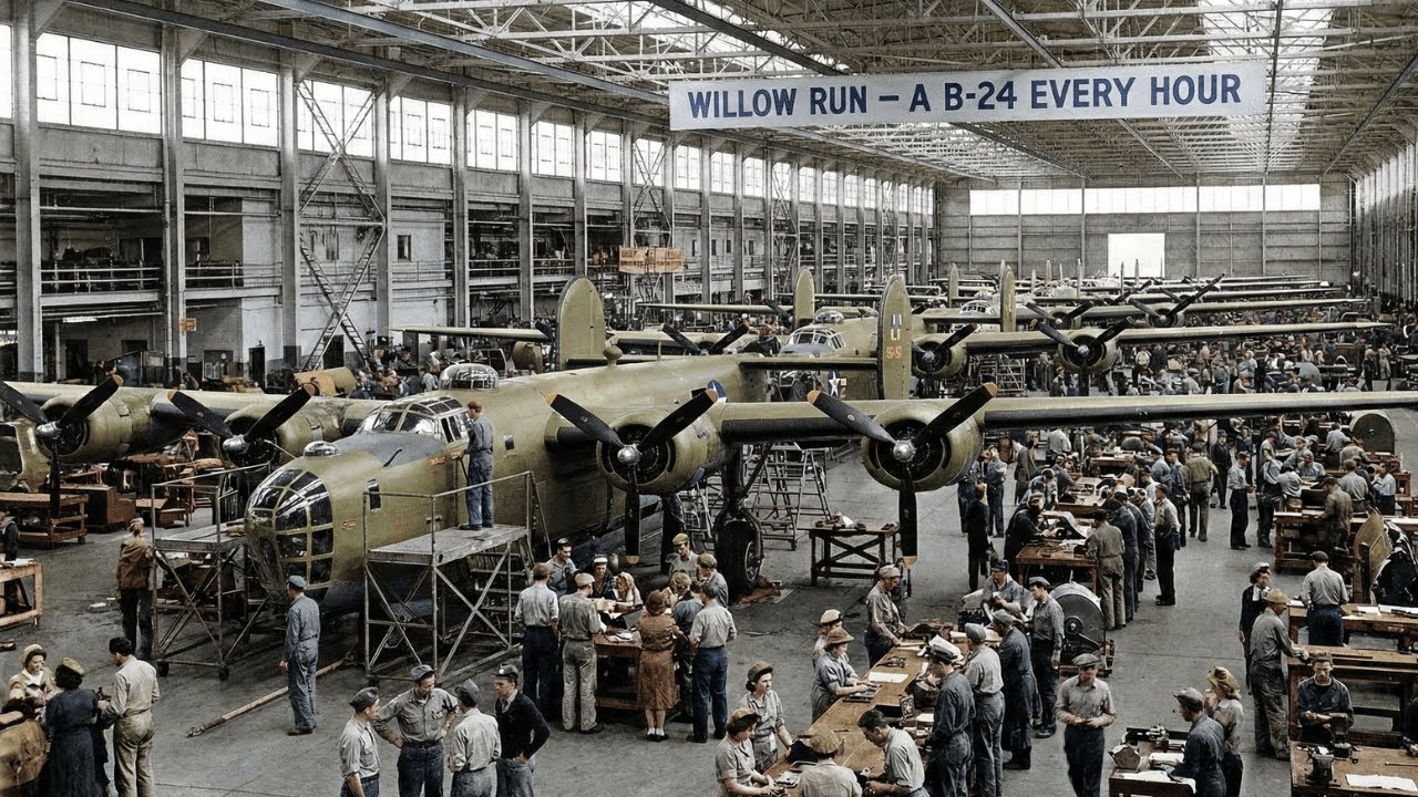 Inside Willow Run Assembly: How 42,000 Workers Built 1 B-24 Every 63 Minutes — Bombed Germany Daily
