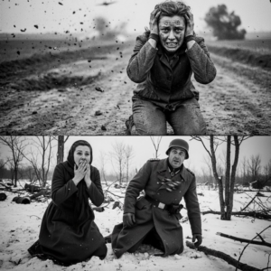 She stood in a line of prisoners outside a bomb-scarred schoolhouse that had been turned into a temporary holding point—one more improvised square in the messy chessboard of April 1945. The morning was damp and cold, the kind of cold that didn’t bite so much as cling, turning breath into a pale ribbon and making the mud feel like it had a memory.