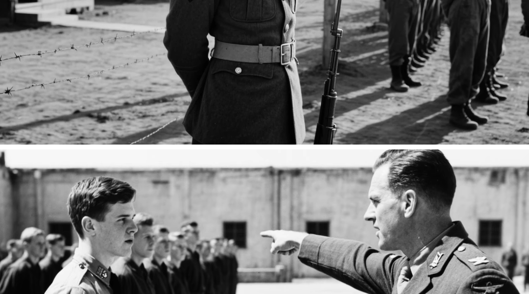 Private David Mitchell stood at attention beside the guard tower as German prisoners filed past for evening roll call. He was nineteen years old, newly assigned, his uniform still stiff with newness, his posture drilled into precision by weeks of basic training. He had imagined war as noise and motion—gunfire, shouted orders, sudden terror. Instead, his days were quiet and repetitive, filled with counts, inspections, and long hours of watching men who were supposed to be enemies but mostly looked tired.