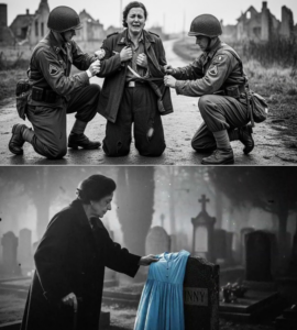 The woman was on the other side of a crude line made of rope and two overturned desks. She wasn’t a soldier. She wasn’t wearing a uniform. She wore a faded blue dress that might have been pretty once, before the hem was muddy and the sleeves were patched with a different fabric. Her hair was pinned back, but the pins were crooked, as if she’d done it with shaking hands.