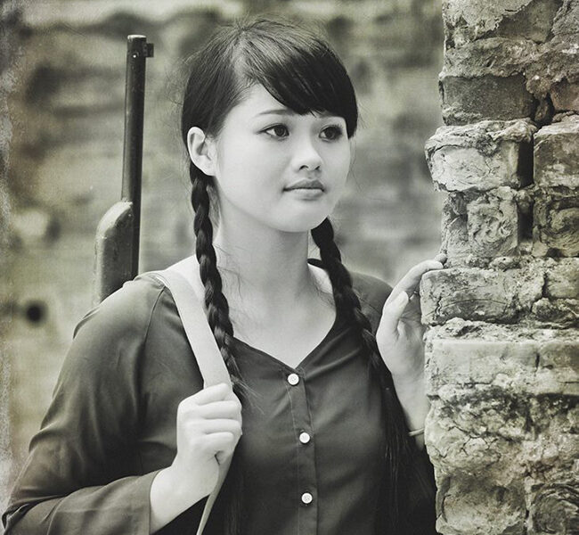 La fotografia è stata scattata in un afoso pomeriggio a Saigon, in un periodo compreso tra l’opprimente calura del 1969 e la flebile speranza del 1970, quando persino il sole sembrava esitare prima di toccare terra. Nell’immagine, una giovane donna è in piedi con le mani legate dietro la schiena. Un cappello a tesa larga le copre il volto, ma non abbastanza da celare la silenziosa sfida nei suoi occhi. Accanto a lei, un soldato le stringe il polso, con un’espressione mista di senso del dovere e sospetto. Intorno a loro, la vita continua: le figure indistinte, le biciclette, il ritmo indifferente di una città abituata alla paura.