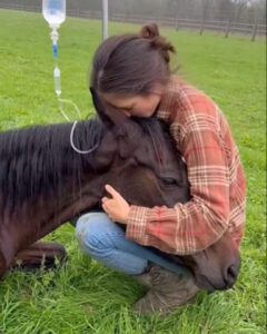 “Rest, okay?” she whispered, stroking his mane. “You don’t have to stand. Just stay with me.”