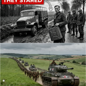 Mitten auf der Straße, als gehöre ihm der Platz, stand ein alter, heruntergekommener Jeep, über und über mit Schlamm bedeckt. Keine Markierungen. Keine Flaggen. Keine Abzeichen. Nur ein dreckiges Fahrzeug, das aussah, als wäre es durch jeden Graben in Frankreich geschleift worden und aus Trotz immer weitergefahren.