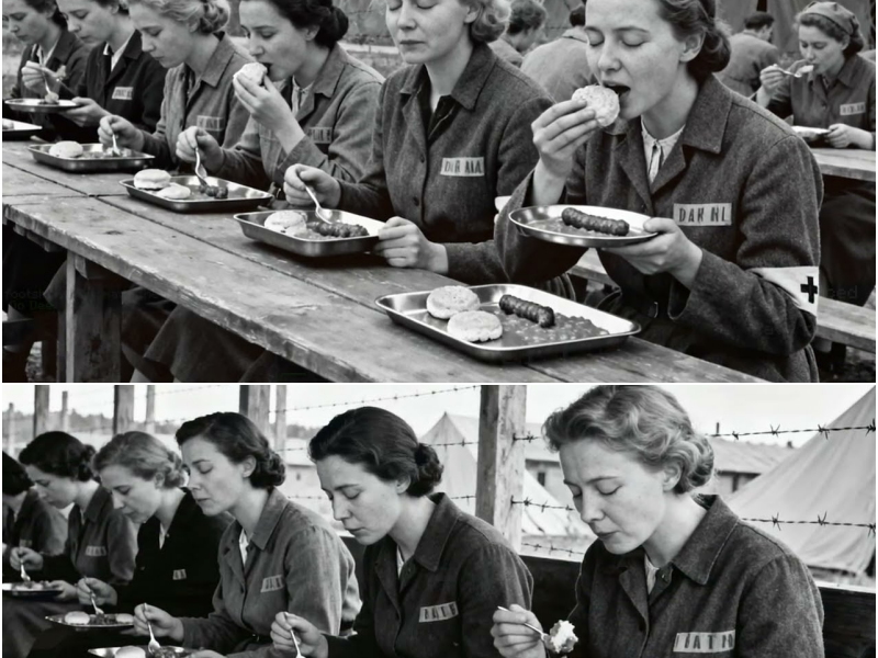 The mess hall was a long, low-slung wooden building with smoke curling lazily from a stone chimney. Inside, the air was thick with warmth. Captain Margaret Dalton stood by the door, her uniform pressed with a precision that commanded respect without needing to shout. She watched the German women file in, noting the way their gazes darted toward the steaming vats behind the serving line.