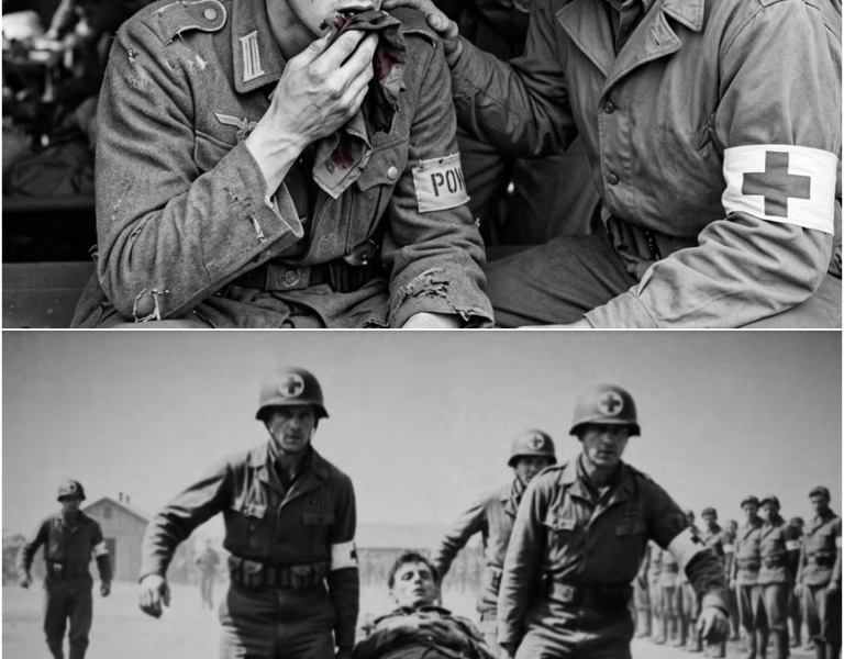 It was just another day in the grim routine of the World War II POW camp, as the intake line moved forward. American soldiers were used to processing prisoners of war, but this time, something was different. As the line progressed, one young German soldier stood out — not because of his uniform, not because of his appearance, but because of his posture. The 20-year-old German POW stood completely still, his body frozen in place as the others walked by. It wasn’t until he coughed into a cloth that the true horror of his condition became apparent. The bright red arterial blood staining the fabric revealed a terrifying secret: this soldier, who had somehow made it this far, had been slowly drowning in his own blood for the past three weeks.