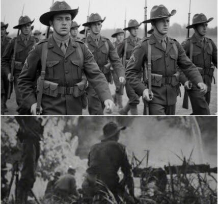 Then came the sound: a grinding metallic clatter. Tank treads. The blunt snout of an M4 Sherman pushed through the foliage, followed by figures in olive drab—American GIs moving with a fluid, confident purpose that felt alien and terrifying. Helga’s commanding officer laid his P38 pistol on the mud and raised his hands.