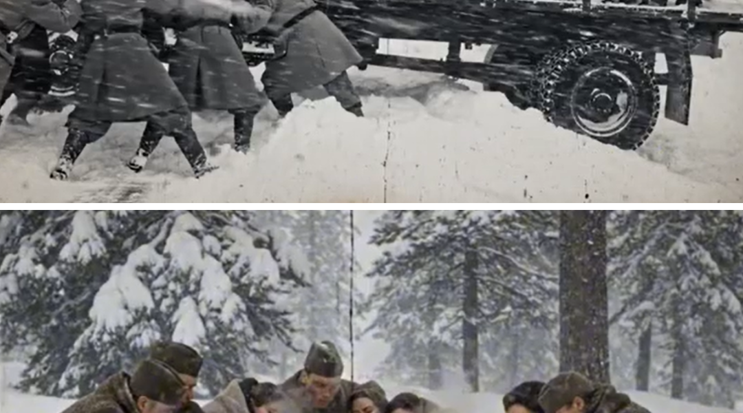 Their fears seemed justified when the convoy stalled, and the American trucks stopped just beyond the ridge. The convoy had been making its way through the storm, but now the engines had died, and there was no choice but to march. With each step, the women’s feet sank deeper into the snow, their bodies trembling from the cold. The sound of heavy boots crunching in the snow and the howling wind made them feel utterly alone in this foreign, unforgiving land.