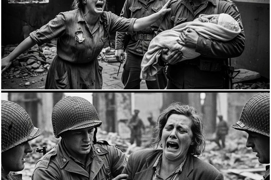 She clutched the baby to her chest, sobbing, begging in broken English and German. Her body was weak, but her grip was desperate.