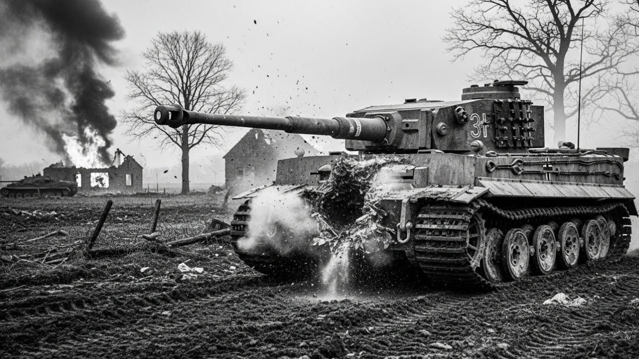 Scena jest teraz gotowa na moment, w którym ta świadomość staje się niezaprzeczalna. Kulminacja nie rozpoczęła się od pojedynczej eksplozji, ale od chwili nieomylnego uświadomienia. Podczas późnego starcia w trakcie spornego podejścia, Tygrys posuwał się dokładnie zgodnie z doktryną, pewny swojego przedniego pancerza i wsparcia ogniowego. Alianci czekali, aż odległość i kąt się zrównają, a następnie oddali strzał z wyważonym spokojem.