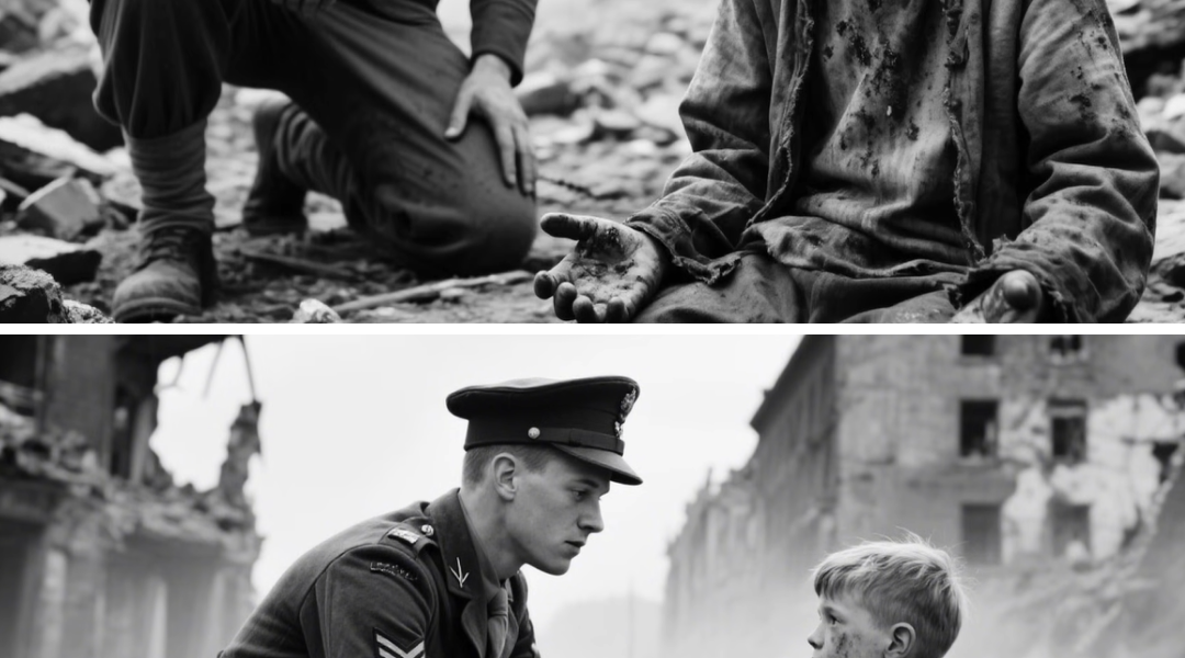 The child looked up, eyes wide with terror. He expected the monster he had been warned about. The one from posters and radio broadcasts. The one who would finish what the bombs had started.